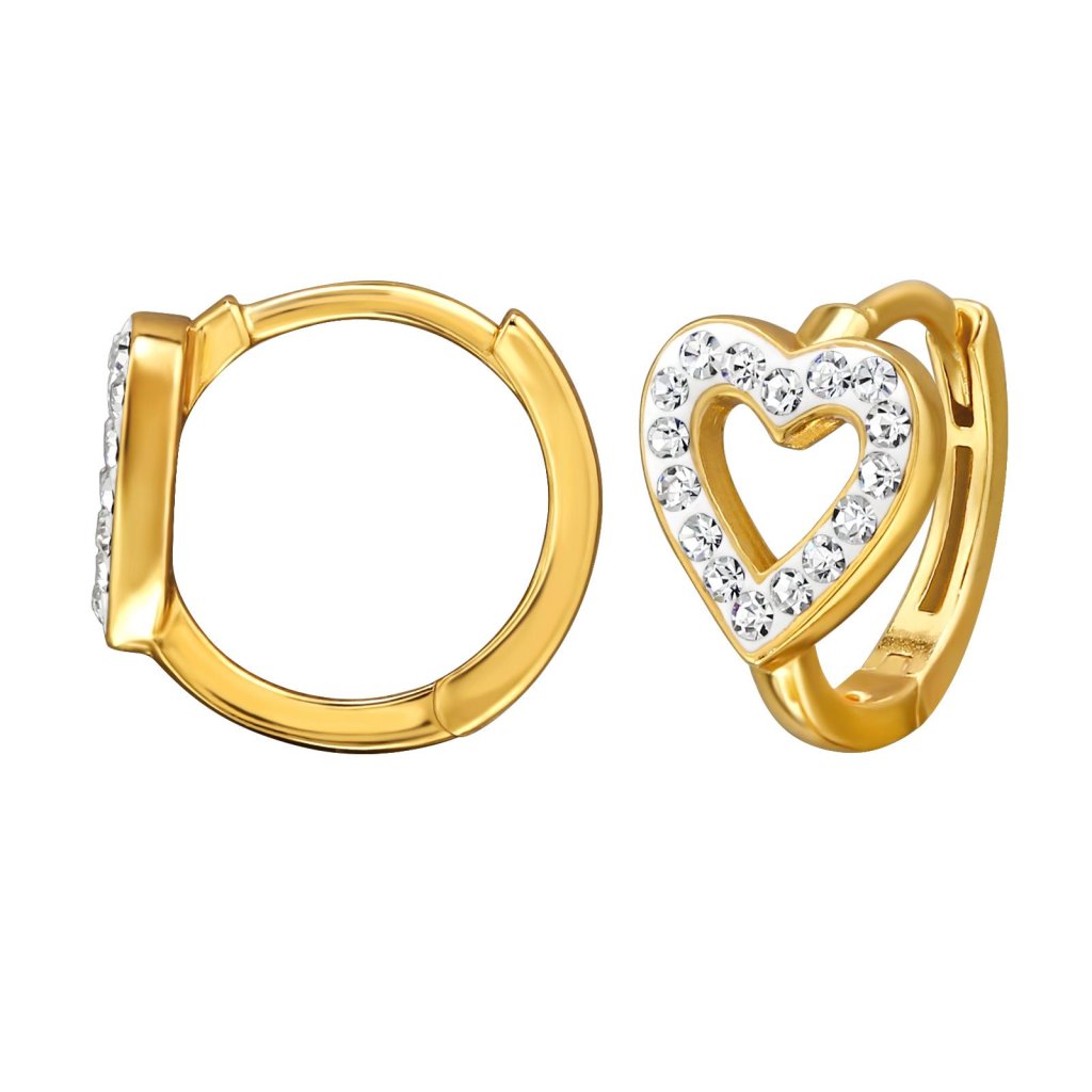 Dopřejte si šperk, který rozzáří Váš obličej a dodá každému dni punc výjimečnosti. Tyto náušnice představují dokonalou rovnováhu mezi klasickým tvarem kroužků a romantickým motivem srdce, vše podtrženo hřejivým leskem ryzího zlata. Základem je šperkovní stříbro o ryzosti 925/1000. Pro dosažení dokonalého vzhledu jsou náušnice plátovány 24K zlatem a opatřeny antikorozní úpravou, která zajišťuje trvalou barvu a vysoký lesk. Náušnice jsou osázeny celkem 32 čirými krystaly, které lemují linii kroužku i samotné srdce. Díky preciznímu brusu nádherně září a odrážejí paprsky při každém vašem pohybu. Šperk je opatřen tzv. ruským patentem. Tento mechanismus je velmi spolehlivý, snadno se zapíná a díky své konstrukci nehrozí nechtěné rozepnutí nebo ztráta náušnice. S velikostí srdce 8 mm x 8 mm a celkovým rozměrem kroužku 8 mm x 12 mm působí náušnice velmi vyváženě – jsou dostatečně výrazné, ale zároveň lehké (1,40 g) pro celodenní nošení.