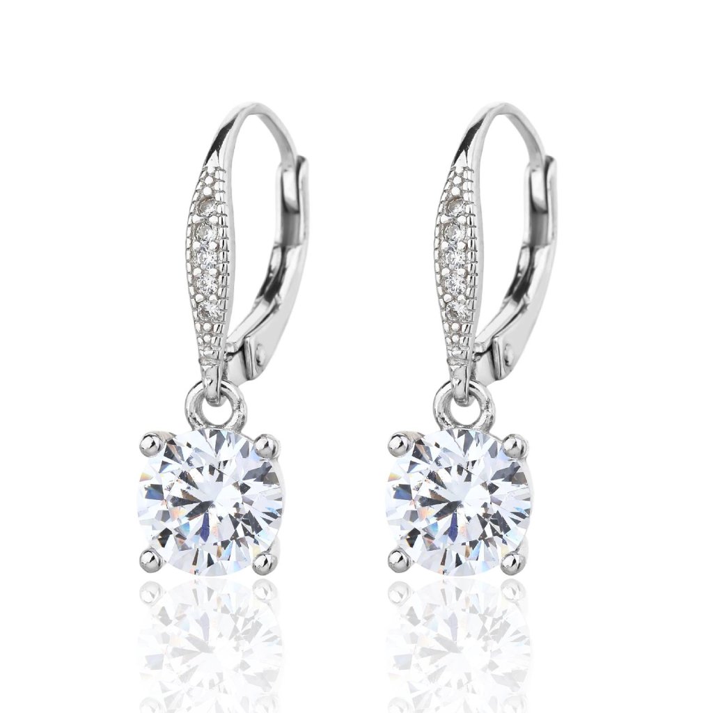 Tyto visací náušnice jsou mistrovským dílem, které kombinuje čistotu stříbra s ohněm přesně broušených kamenů. Dominantní čirý zirkon je doplněn drobnými kamínky na přední straně zapínání, což vytváří celistvý a luxusní dojem. Centrální kámen je bezpečně uchycen ve čtyřech krapnách, které k němu propouští světlo ze všech stran. Oslnivý jas, který jemně zvýrazní linii vašeho krku a obličeje. Přední strana klasické dámské klapky je zdobena řadou drobných zirkonů. Tento detail povyšuje náušnice na úroveň vysokého šperkařství a zajišťuje, že vypadají skvěle z každého úhlu. Zapínání na patent (klapku) patří k nejbezpečnějším systémům – náušnice se snadno nasazují a spolehlivě drží i při společenských událostech nebo tancích.