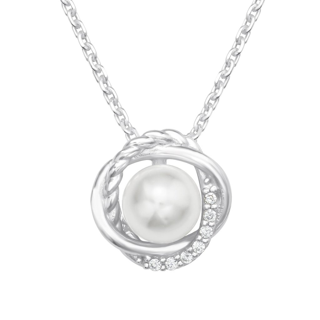 Hledáte šperk, který v sobě snoubí klasickou eleganci perel s moderním třpytem zirkonů? Tento náhrdelník je navržen tak, aby podtrhl přirozenou ženskou krásu a dodal vašemu stylu nádech luxusu a jemnosti. Centrální perla je obklopena dvěma proplétanými kruhy. Jedním s hladkým pleteným vzorem a druhým, který je osázen sedmi čirými zirkony. Ty jsou usazeny pomocí precizní technologie „nastavení vosku“, díky čemuž nádherně září a odráží paprsky při každém vašem pohybu. Přívěsek působí v dekoltu velmi jemně a vkusně, což z něj činí ideální doplněk k halenkám i večerním šatům. Součástí je pevný řetízek o tloušťce 1 mm a nastavitelné délce až 45 cm, který zajišťuje komfortní nošení a dokonalé přizpůsobení vašemu outfitu.